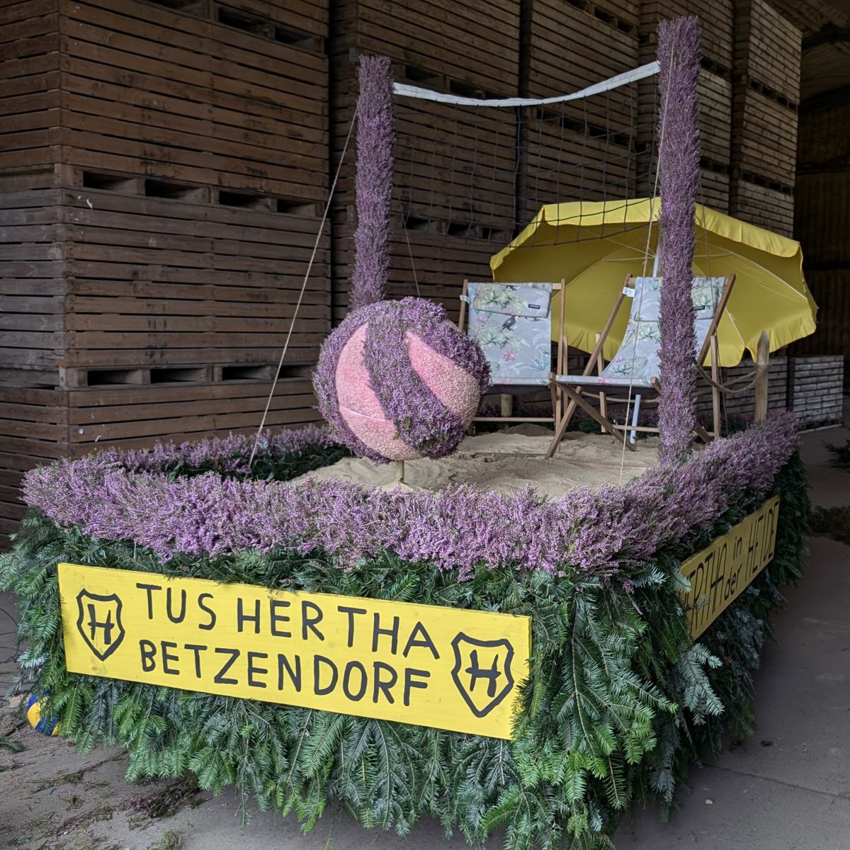 Wer ist eigentlich die „Hertha“? Der Sportverein TuS Hertha Betzendorf ist das, was in der Gemeinde Betzendorf und vielleicht auch anderswo nur liebevoll die Hertha genannt wird. In Betzendorf kommen wöchentlich in mehreren Sportarten und im Rahmen mehrerer Veranstaltungen immer wieder verschiedene Menschen zusammen, so auch wir. Mehrmals die Woche treffen wir uns in unterschiedlichen Konstellationen und Altersstufen, um gemeinsam Volleyball zu spielen. Also haben wir uns als Wagenbaugruppe schnell auf das Motiv des Volleyballfeldes geeinigt.