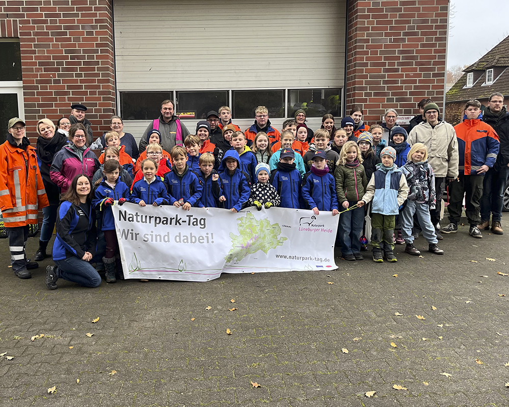 Am 8. November fand im ganzen Gebiet des Naturpark Lüneburger Heide wieder der Naturpark-Tag statt. An diesem Aktionstag ist jede/r eingeladen, an der Pflege unserer Natur- und Kulturlandschaft vor Ort aktiv mitzuwirken. In der Gemeinde Soderstorf tun wir das jedes Jahr mit mehreren Gruppen. So waren in diesem Jahr 50 Mitglieder aus unserem Kinder- und Jugendfreizeitverein e.V. und der Kinder- und Jugendfeuerwehr Soderstorf tatkräftig mit dabei. Wir waren 17 Erwachsene und