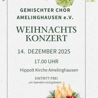 Das Konzert findet am 3. Advent, dem 14.12.2025, in der Hippolitkirche Amelinghausen statt. Beginn ist um 17:00 Uhr. Der Eintritt ist frei, für eine Spende wären wir dankbar.