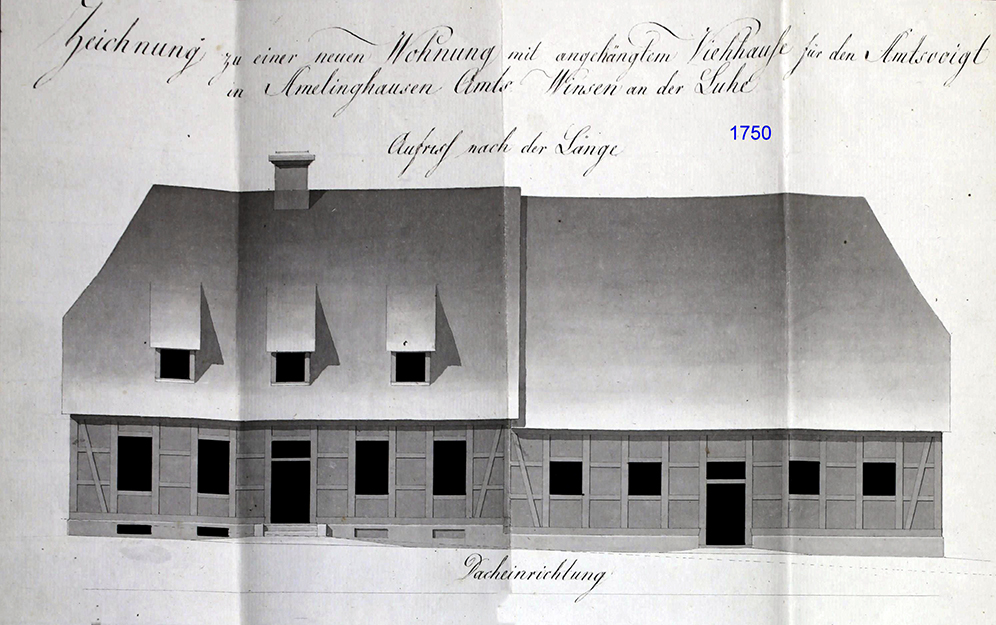 Die historischen Quellen schweigen sich darüber aus, wann das erste Amtsvogteigebäude gebaut worden ist. Es befindet sich im Staatsarchiv Hannover ein amtliches Schreiben aus dem Jahre 1647, aus dem hervorgeht, in welchem schlechten baulichen Zustand sich das 1594 erbaute Amtsgebäude befand. In einem Bittschreiben an den Herzog wurden die einzelnen erforderlichen Reparaturen genau aufgelistet und mit dem Wunsch verbunden, die benötigten Gelder für die Beseitigung der großen baulichen Mängel zu bewilligen. Da es in unserer Vogtei wenig Hartholz gab, kam dieses aus Garlstorf. Wenn man davon ausgeht, dass ein mit Stroh gedecktes Fachwerkhaus ca. 200 bis 300 Jahre seine Funktion als Wohnhaus erfüllt, dann kann nach der vorliegenden Quellenlage mit Recht behauptet werden, dass es um 1400 in Amelinghausen schon ein Verwaltungsgebäude mit einem Amtsvogt gegeben hat.