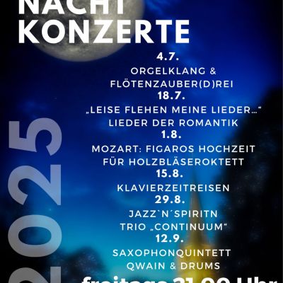 Die Hippolitkirchengemeinde Amelinghausen lädt herzlichst zu folgenden Freitag-Nacht-Konzerten ein, die jeweils um 21:00 Uhr beginnen: