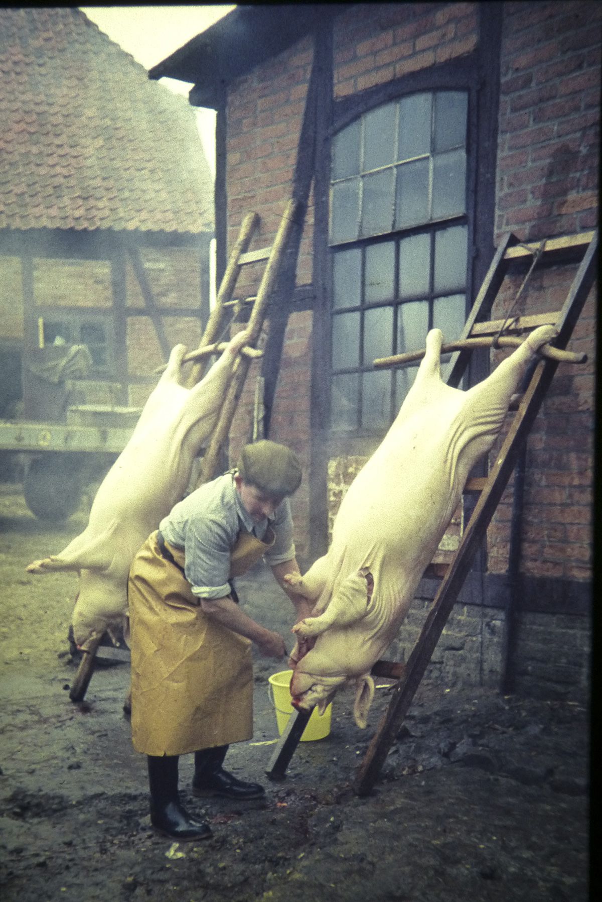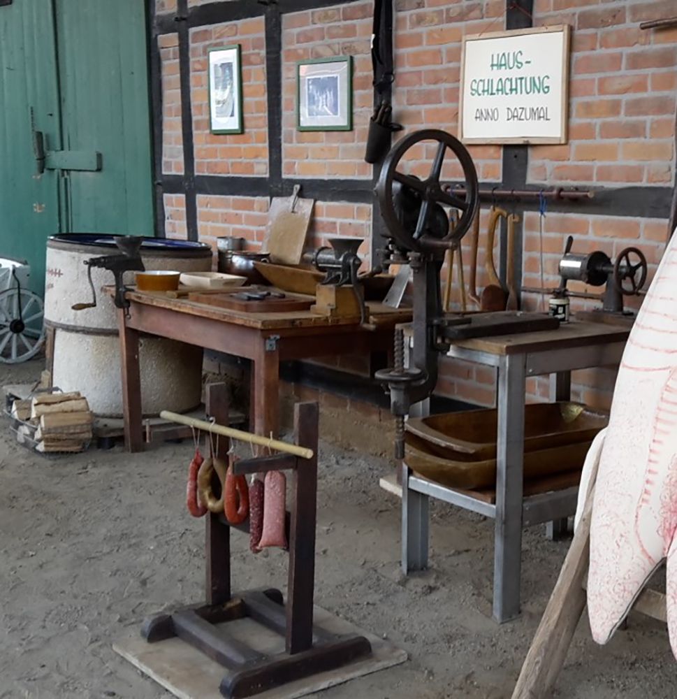 War es dann soweit, erschien der Schlachter morgens um sieben. Das Wasser im Kessel musste kochend heiß sein, deshalb wurde am Vorabend schon mit dem Heizen begonnen.