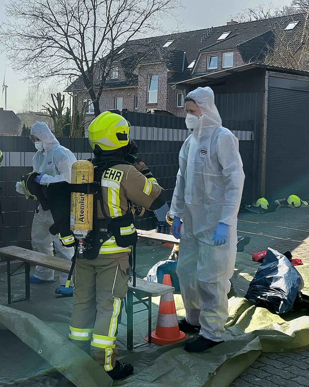Die Feuerwehren Amelinghausen, Oldendorf/Luhe, Drögennindorf und Soderstorf sowie die Kommunikationsgruppe der Gemeindefeuerwehr wurden kurz nach 12 Uhr am Freitag, den 21.03.2025 mit dem Stichwort „B4 – Zimmerbrand Mehrfamilienhaus mit Menschenleben in Gefahr“ zu einer Einsatzstelle im Frankenweg in Amelinghausen gerufen. Beim Eintreffen der ersten Kräfte hatten sich bereits alle Bewohnenden des Gebäudes unverletzt ins Freie begeben. In einer Wohnung im Erdgeschoss war es zu einem Brand in einer Küche gekommen. Zwei Trupps unter Atemschutz betraten das Gebäude. Während ein Trupp in der betroffenen Wohnung zur Brandbekämpfung vorging, kontrollierte der Zweite das restliche Gebäude auf weitere Personen. Der Brand konnte schnell eingedämmt werden. Ein weiterer Trupp ging anschließend mit einem Nasssauger in die Wohnung vor, um Schäden durch Löschwasser zu minimieren. Alle eingesetzten Atemschutzgeräteträger durchliefen nach dem Einsatz eine eingerichtete Hygienestelle. Insgesamt war die Feuerwehr mit etwa 50 Personen im Einsatz. Die Einsatzkräfte wurden während der Einsatzdauer durch einen Rettungswagen des ASB abgesichert. Auch die Polizei war vor Ort. Die Brandursache sowie die Schadenshöhe können durch die Feuerwehr nicht genannt werden. Die betroffene Wohnung ist derzeit unbewohnbar. Verletzt wurde niemand. Der Frankenweg sowie der Hessenweg waren für die Dauer des Einsatzes voll gesperrt.