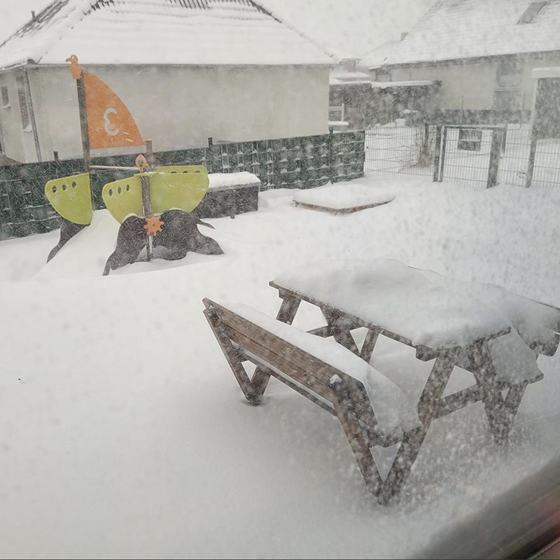 Das neue Jahr beginnt mit einem besonderen Erlebnis. Beim Blick in den Garten bietet sich uns eine wunderschöne Schneelandschaft.Wenn die ersten Schneeflocken lautlos vom Himmel fallen, verändert sich die Welt für einen Moment. Straßen, Dächer und Bäume sind von einer weißen Decke überzogen.Vor allem Kinder erleben den ersten Schnee mit großer Begeisterung. Staunend beobachten unsere Kinder aus der Kinderkrippe die tanzenden Flocken am Fenster und können es kaum abwarten, nach draußen zu gehen.