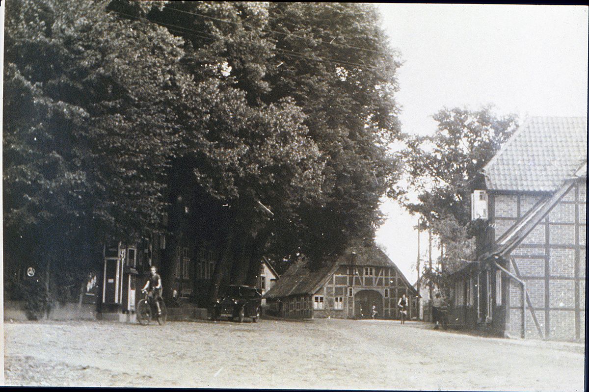 Dorflinde mit Gasthaus Studtmann im Hintergrund