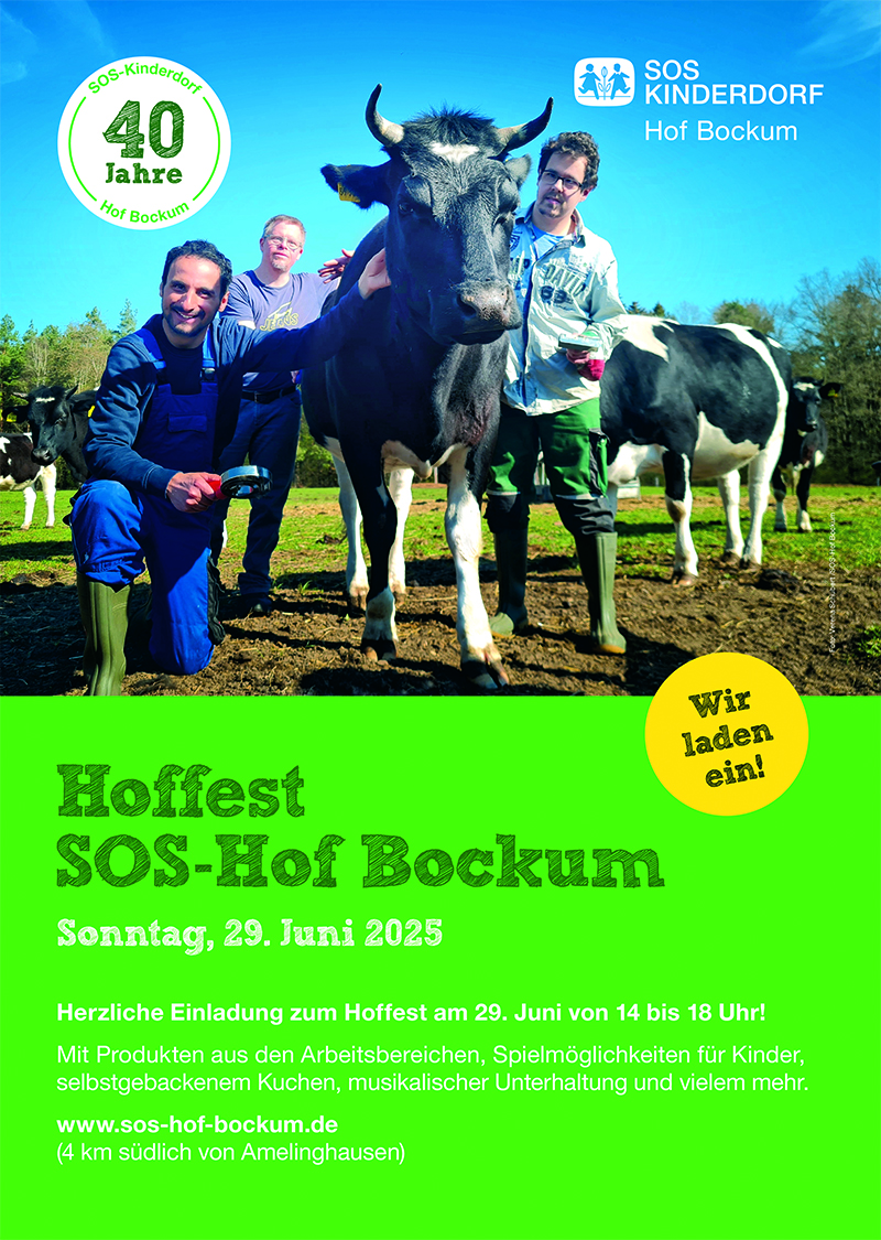 40 Jahre gibt es Leben im SOS-Hof Bockum, das wurde am letzten Sonntag im Juni mit über tausend Gästen bei strahlendem Sonnenschein gefeiert.1985 gründete der SOS-Kinderdorfverein in Bockum eine Dorfgemeinschaft mit dem Ziel, erwachsenen Menschen mit einer geistigen Behinderung neben einem Zuhause auch einen Ort zu bieten, wo sie sich ganzheitlich, auch in ihrer Arbeit, entfalten können. Diesem Ziel ist die Einrichtung auch weiterhin verpflichtet: Unterstützung und Sicherheit, soviel das gebraucht wird, und gleichzeitig so viel Selbstständigkeit und...